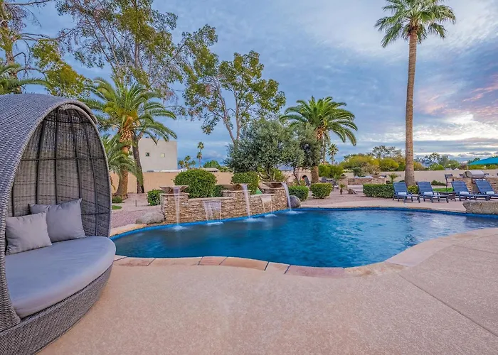 La casa vacanze si trova a 30 km dall'aeroporto Internazionale di Phoenix-Sky Harbor e a 10 minuti in macchina da punti di interesse culturale come il Paolo Soleri. Gli ospiti troveranno Hancock Plaza Shopping Center a una distanza di 4,1 km da questa villa con 5 camere da letto, mentre il CrackerJax è a circa 2 km. La villa Central Location, Heated Pool, Game Room, Bbq è situata a 750 metri da AZ Air Time Trampoline Park, ideale per le famiglie.